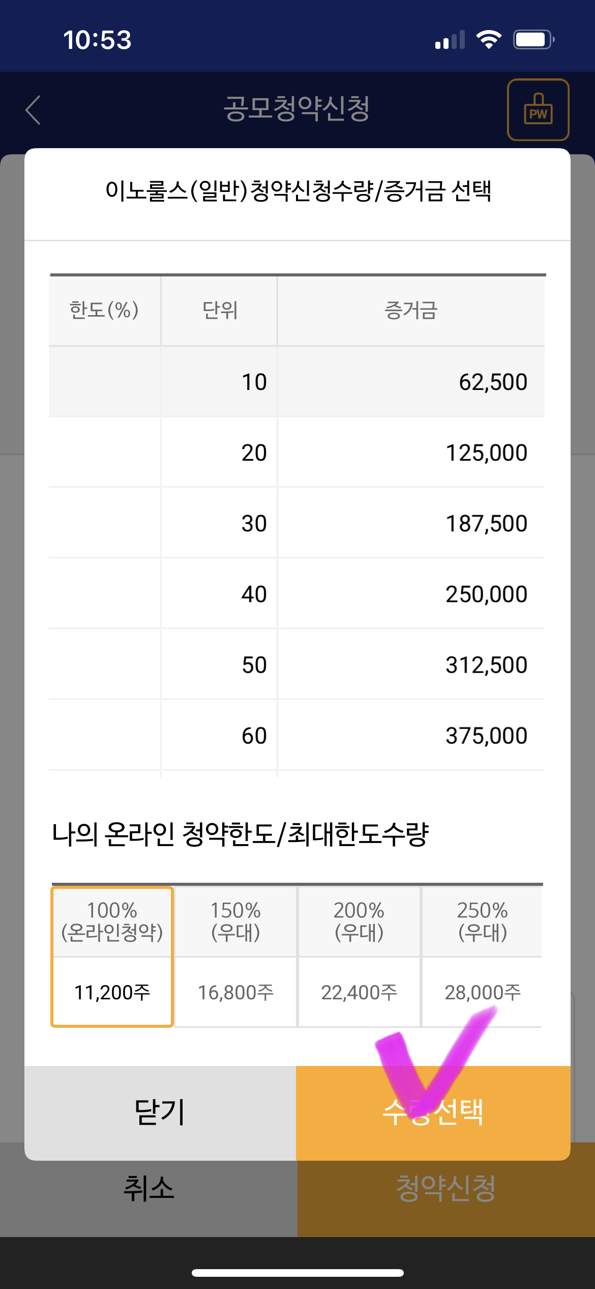 -청약 증거금을 선택 ▼