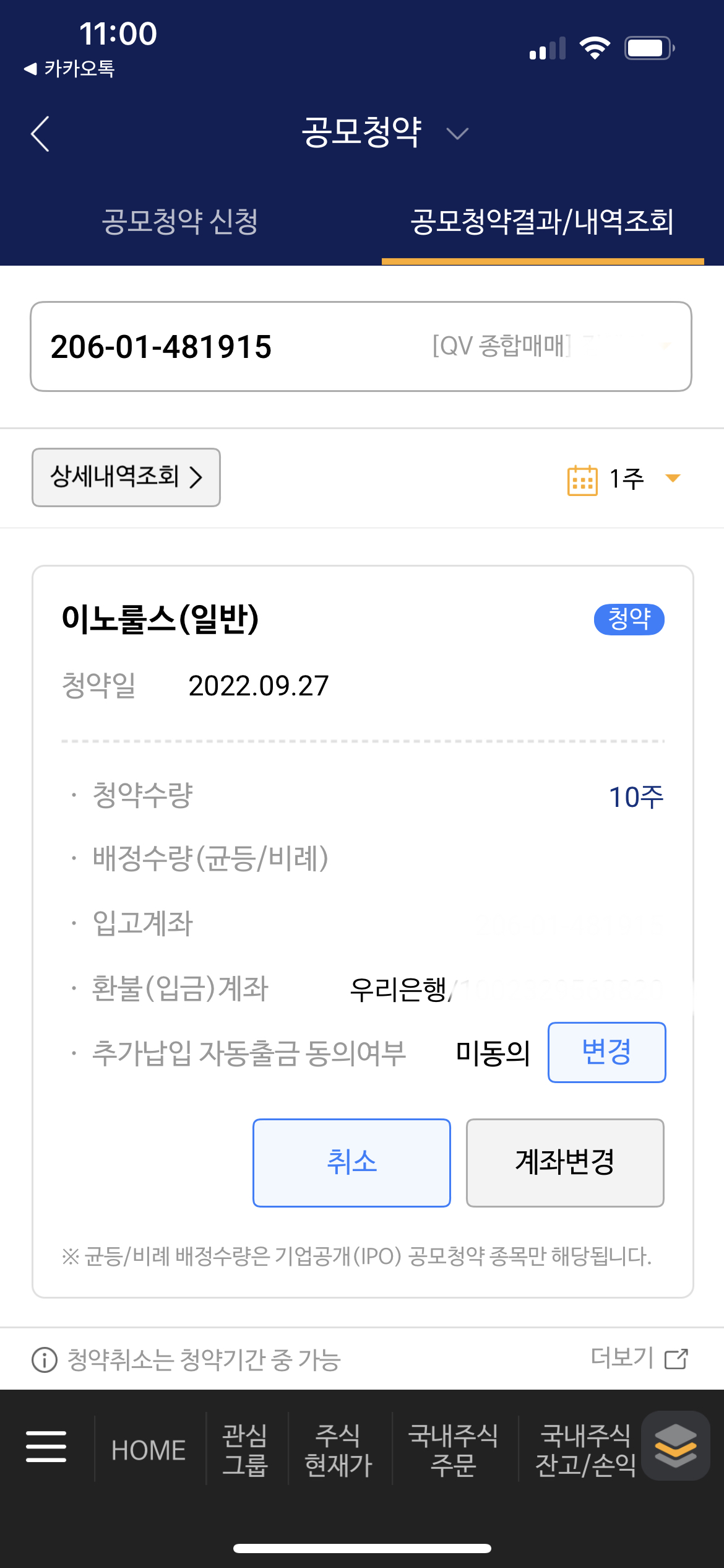 저 같은 경우는 저 혼자 가족들의 증권 계좌를 모두 관리하고, 공모주를 청약하여 혼자서 다 매도하기 때문에, 환불 계좌를 제 은행으로 해서 환불받고, 입고 계좌를 제 계좌로 해서 가족들의 주식까지 한 번에 매도할 때도 있습니다. 하지만 이것은 증권사마다 다릅니다.
